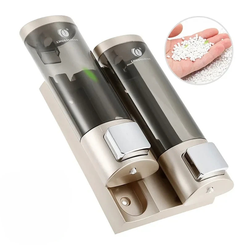 Distributeur Mural Double De Savon Et Shampooing En Plastique Doré
